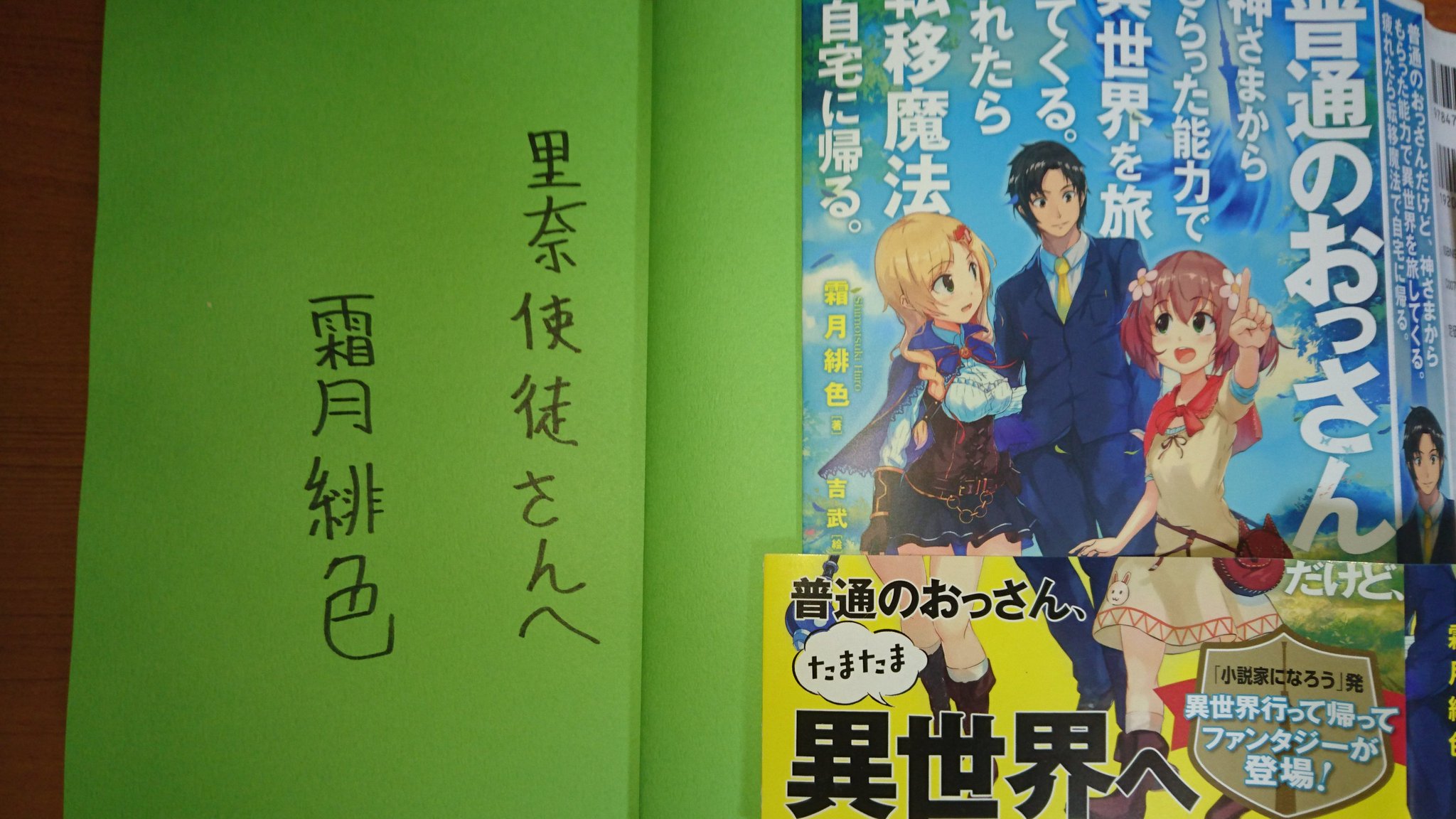 里奈使徒 ティレア1 2巻発売中 Sur Twitter 普通のおっさんだけど 神さまからもらった能力で異世界を旅してくる 疲れたら転移魔法で 自宅に帰る と 神さまにチート能力もらって転生したらオークだった の霜月緋色 旧しめ鯖丸 さんからサイン本を頂きました