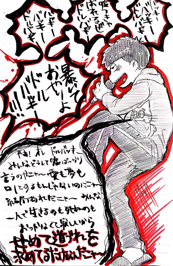八六 仮 On Twitter 松野一松はカラオケ行ってお酒入ったらめっちゃ歌いそう トト子ちゃんの部屋行く時あんな服着てたくらいだしコテコテな曲で 個人的に筋肉少女帯の 暴いておやりよドルバッキー をエスパーニャンコと歌ったらぴったり過ぎると思う 一松 Https T Co