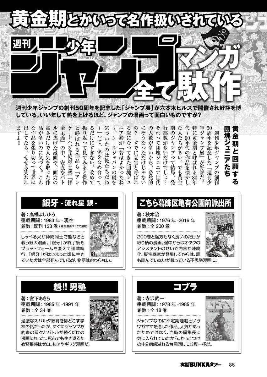 男尊女卑のジャンプ黄金期は駄作まみれ 実話bunkaタブーの酷すぎる漫画レビューに非難殺到 Togetter