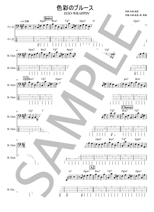 楽譜 ベースtab 色彩のブルース Ego Wrappin エレキベース 中級 Piascore 楽譜ストア