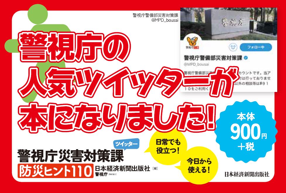 宮脇書店 On Twitter 宮脇書店本店 年中無休 営業時間9時 22時 ツイッターで大人気 人気の呟きを選りすぐった情報本が話題となっています お子様やご年配の方でも無理なく実行出来る内容ばかり 警視庁災害対策課ツイッター防災ヒント110 日本経済新聞