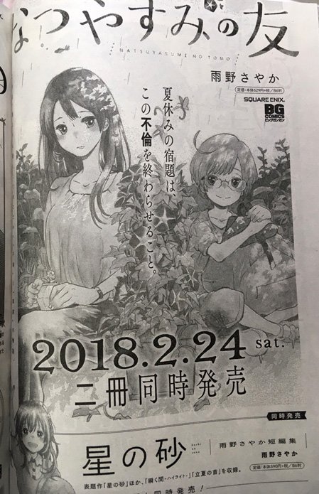 雨野さやか A Twitteren 発売になった月刊ビッグガンガンにお知らせを掲載していただいておりますが 2月24日に初コミックス なつやすみの 友 星の砂 雨野さやか短編集 が2冊同時発売になります どうぞよろしくお願いいたします